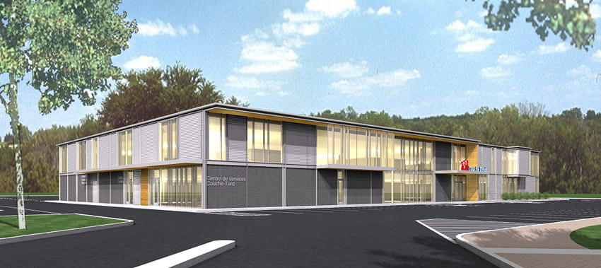 L’entreprise Couche-Tard inc. nous a mandaté afin de relocaliser 250 employés dans les 8 mois suivant cette commande. Cette commande est apparue suite à l’échec de la négociation entre le client et le bailleur du local déjà occupé par l’entreprise, ce qui se traduisait par le besoin de trouver un terrain, d’établir les paramètres et de conceptualiser un bâtiment dans un délai relativement serré.