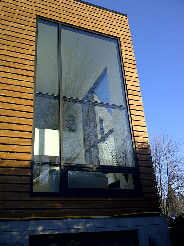 Cette résidence intergénérationnelle de 2 800 pi², située dans le quartier Sainte-Dorothée à Laval se caractérise par son architecture contemporaine aux lignes épurées. La volumétrie du concept et l’aménagement des lieux permettent l’intégration d’une fenestration généreuse dont l’apport important d’éclairage naturel est considérable et bonifie la vie au quotidien. Le revêtement extérieur aux matériaux nobles rehausse cette volumétrie.