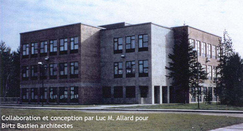Le parti architectural adopté pour la réalisation de l’école du Geai-Bleu était le développement d’un plan compact, donnant l’esprit d’une « petite » école, malgré sa grande capacité d’accueil. Il en résulte une stratégie économique qui permet d’éviter les longs corridors desservant les classes. Le nombre de cages d’escalier est réduit au minimum et par leur emplacement, elles assurent une circulation efficace des usagers. Le secteur du gymnase, juxtaposé aux salles polyvalentes, devient le secteur communautaire de l’école utilisable les soirs et les fins de semaine et ce, en toute sécurité, grâce à son entrée distincte. De plus, les aménagements extérieurs ont été conçus judicieusement afin d’éviter les conflits entre la circulation automobile du stationnement et celle du débarcadère des autobus.