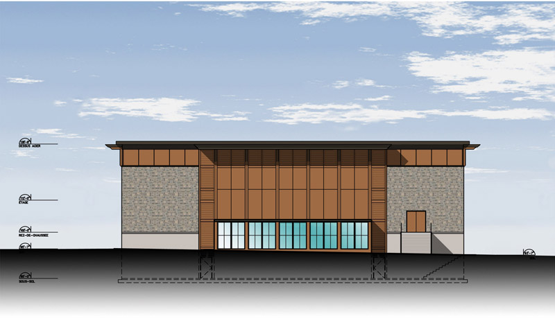 Implanté au même endroit que le centre existant, le centre sera composé d’un gymnase double dans lequel se retrouveront un terrain de basketball, un terrain de volleyball et quatre terrains de badminton. Les besoins incluségalement deux vestiaires avec casiers, quatre (4) locaux de rangement pour les équipements sportifs et un espace pour accueillir les joueurs de baseball et les patineurs l’hiver. En surplomb du gymnase, des estrades seront aménagées afin d’accueillir une centaine de spectateurs. À l’étage, au même niveau que les estrades, se retrouve une grande salle multifonctionnelle. Le sous-sol sera accessible et sera d’une hauteur suffisante pour y aménager différents locaux.